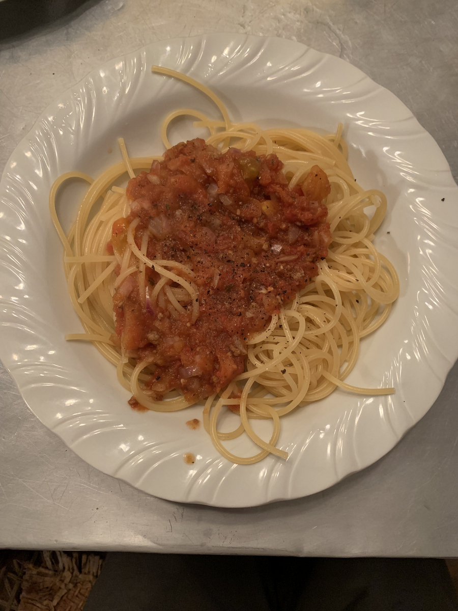 ウガリとタスカビールを見ると、ケニアに来たなと思う。夕食はホテルに備えつけのキッチンにてミートパスタを作って食べた。美味でした~