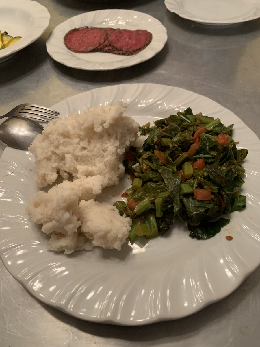 ウガリ自体に味はないので、野菜とトマトであえた総菜と一緒に食べる。これが美味しい。家に帰って作って食べたことも何回かあるけれど、やはり現地のご飯は現地で食べるのが一番旨い。